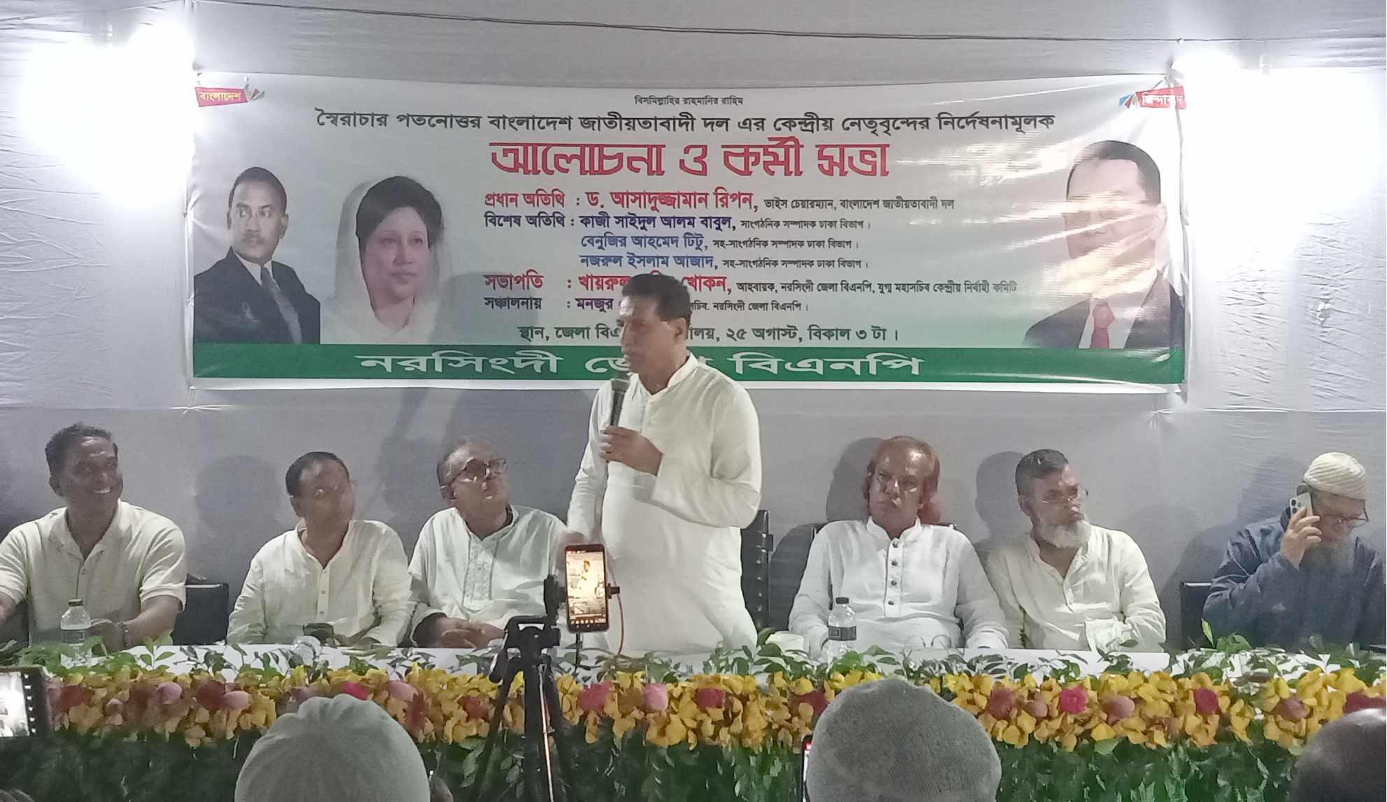 বিএনপির যুগ্ম মহাসচিব ও নরসিংদী জেলা বিএনপির আহবায়ক খায়রুল কবির খোকন'র সভাপতিত্বে আলোচনা সভায প্রধান অতিথি হিসেবে উপস্থিত ছিলেন কেন্দ্রীয় বিএনপির ভাইস চেয়ারম্যান ড. আসাদুজ্জাম রিপন।