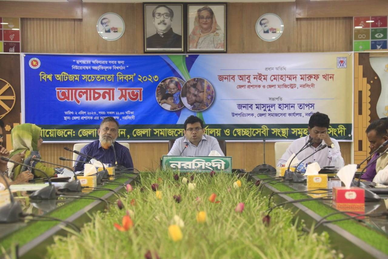রোববার (২ এপ্রিল) সকাল সাড়ে এগারোটায় জেলা প্রশাসক হলরুমে নরসিংদী জেলা প্রশাসন ও জেলা সমাজসেবা কার্যালয়ের আয়োজনে ১৬ তম বিশ্ব অটিজম দিবস উপলক্ষ্যে আলোচনা সভা অনুষ্ঠিত হয় ।