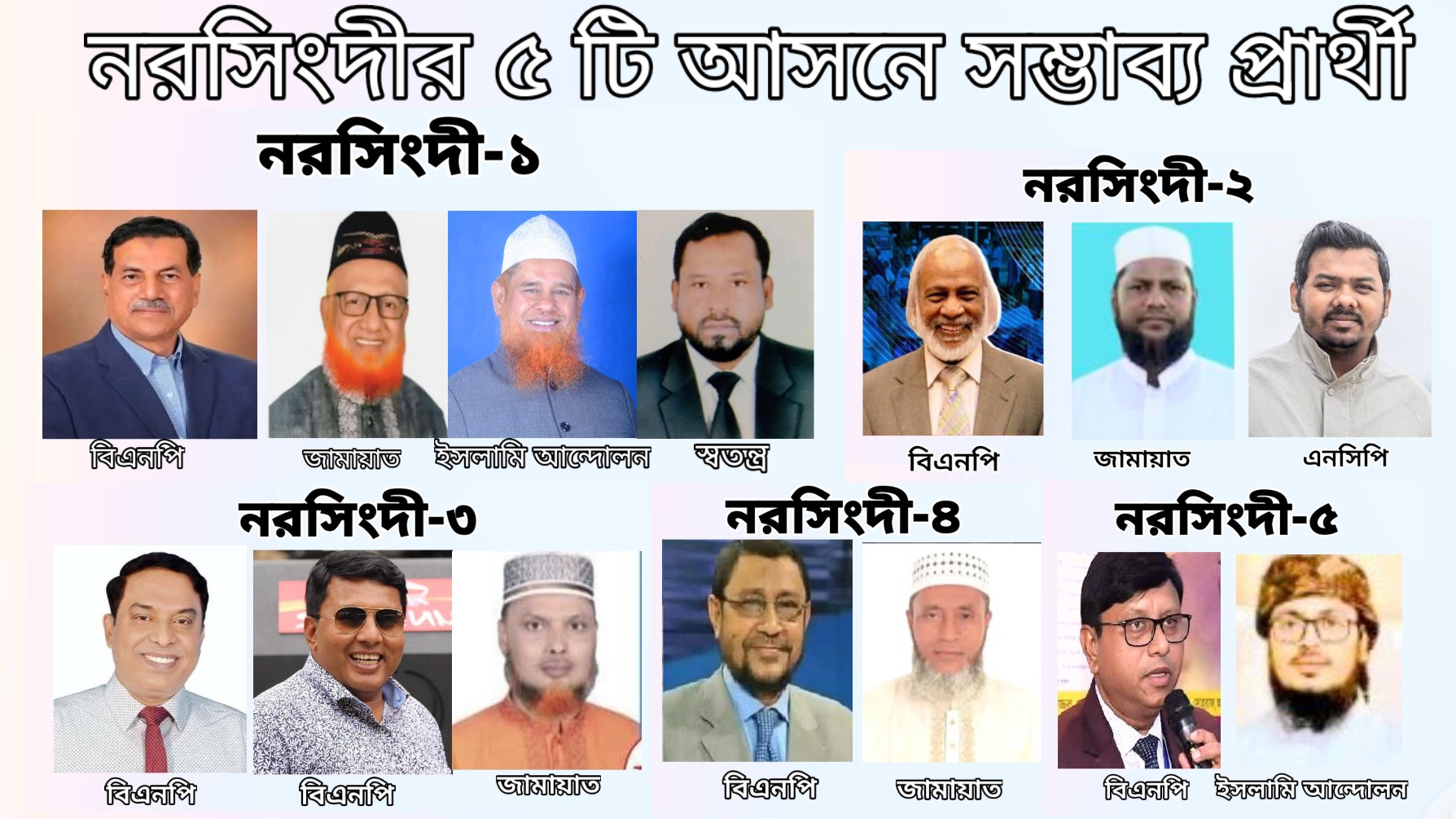 তবে বিগত নির্বাচনগুলোতে জামায়াত নরসিংদীর কোন আসন থেকেই জয়লাভ করতে পারেনি। তাছাড়া এনসিপি, এলডিপি, গণঅধিকার, ইসলামী আন্দোলন বাংলাদেশ, খেলাফত মজলিশসহ অন্য দলের প্রার্থীরাও বেশির ভাগ আসনেই তৎপরতা চালাচ্ছেন।