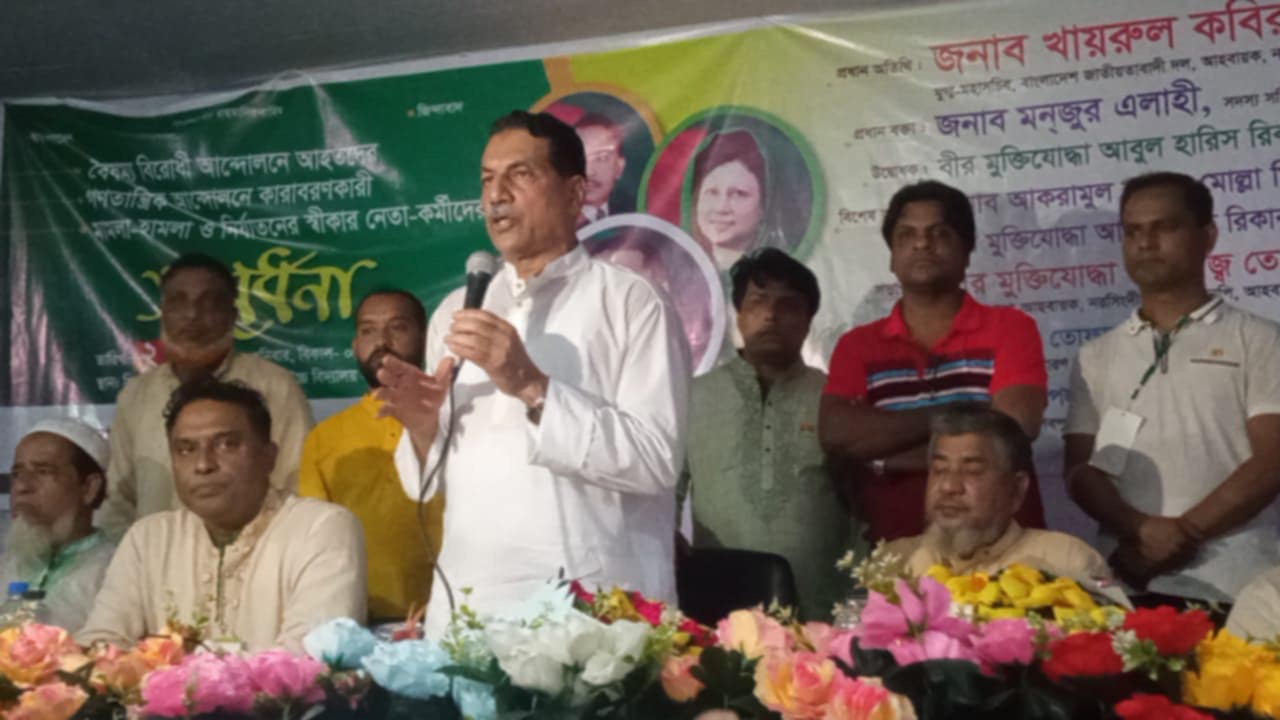 বিএনপি’র যুগ্ম মহাসচিব ও নরসিংদী জেলা বিএনপি’র আহবায়ক খায়রুল কবির খোকন বলেছেন, স্বৈরাচারী হাসিনা ও তার আওয়ামীলীগ প্রতিহিংসার রাজনীতি করেছে, গুম খুনের রাজনীতি করেছে। এদেশের ছাত্র-জনতাকে হত্যা করেছে, বৈষম্যবিরোধী আন্দোলনে আবু সাঈদ থেকে শুরু করে নরসিংদীর তাহমিদ সহ সারাদেশে ১ হাজার ৫শত ৮১ জন নিহত হয়েছে। তাই স্বৈরাচারী হাসিনার জায়গা আর বাংলাদেশের মাটিতে হবে না।