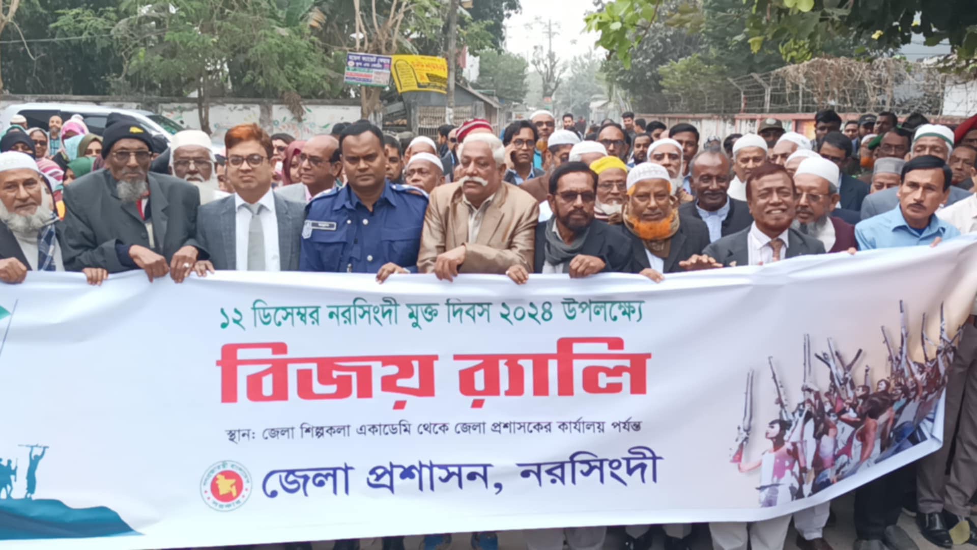 নরসিংদী মুক্ত দিবস উপলক্ষ্যে বীর মুক্তিযোদ্ধা, সরকারী কর্মকর্তা, গণ্যমান্য ব্যক্তিবর্গ, সুশীল সমাজের প্রতিনিধি, পেশাজীবী সংগঠনের প্রতিনিধি এবং সামাজিক-সাংস্কৃতিক সংগঠনের প্রতিনিধিদের সমন্বয়ে আলোচনা সভা শেষে দিনব্যাপী আড়ম্বরপূর্ণ ও বর্ণাঢ্য চারু, কারু ও স্থানীয়ভাবে উৎপাদিত শিল্পপণ্যের প্রদর্শনীর মাধ্যমে বিজয় মেলার উদ্বোধন করা হয়।